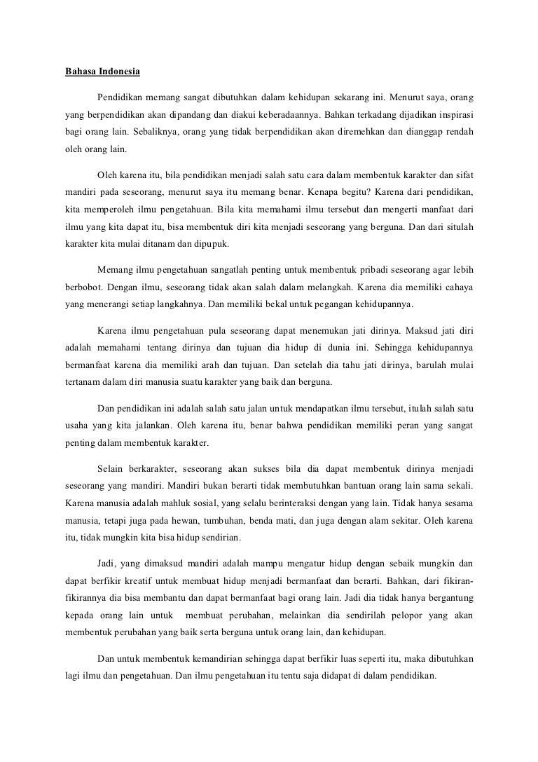 Peran Pendidikan Dalam Membangun Manusia Berkarakter Dan Mandiri