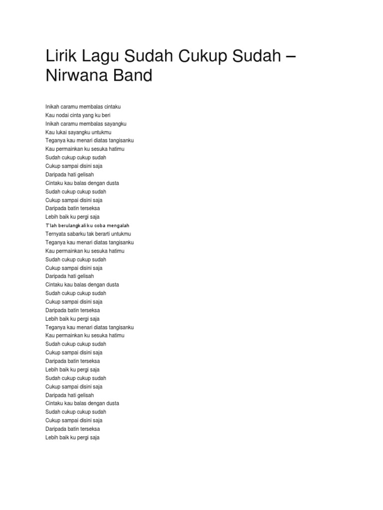 Sudah Cukup Sudah Lirik Muat Turun Sudah Cukup Sudah Dengar Mp3 Online Percuma
